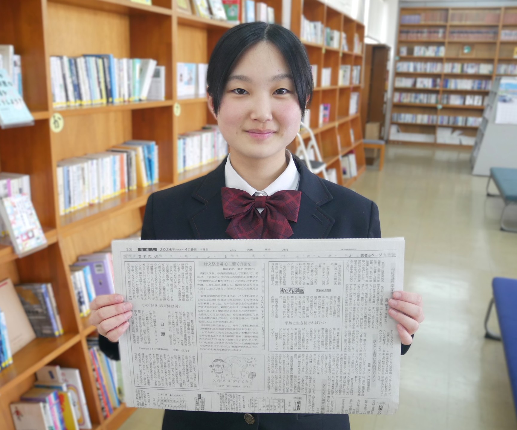 4月9日付の山陽新聞ちまた欄に、藤井彩乃さんの原稿が掲載されました。吹奏楽部員として毎日頑張っている彩乃さんですが、スピーチ部員としても活動しています。昨年度の…