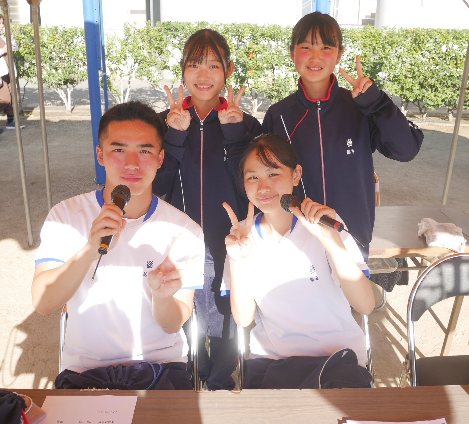 毎年、体育祭の放送をきっかけに大きく成長してくれる部員達。今年はどれだけ進化してくれるのか、楽しみにしています。さぁ、勝負の県大会まで2週間を切りました。今年度の県大会は山陽高校の生石ホールで開催されます。この調子で、4人で力を合わせて県大会に向けて頑張っていきましょう‼