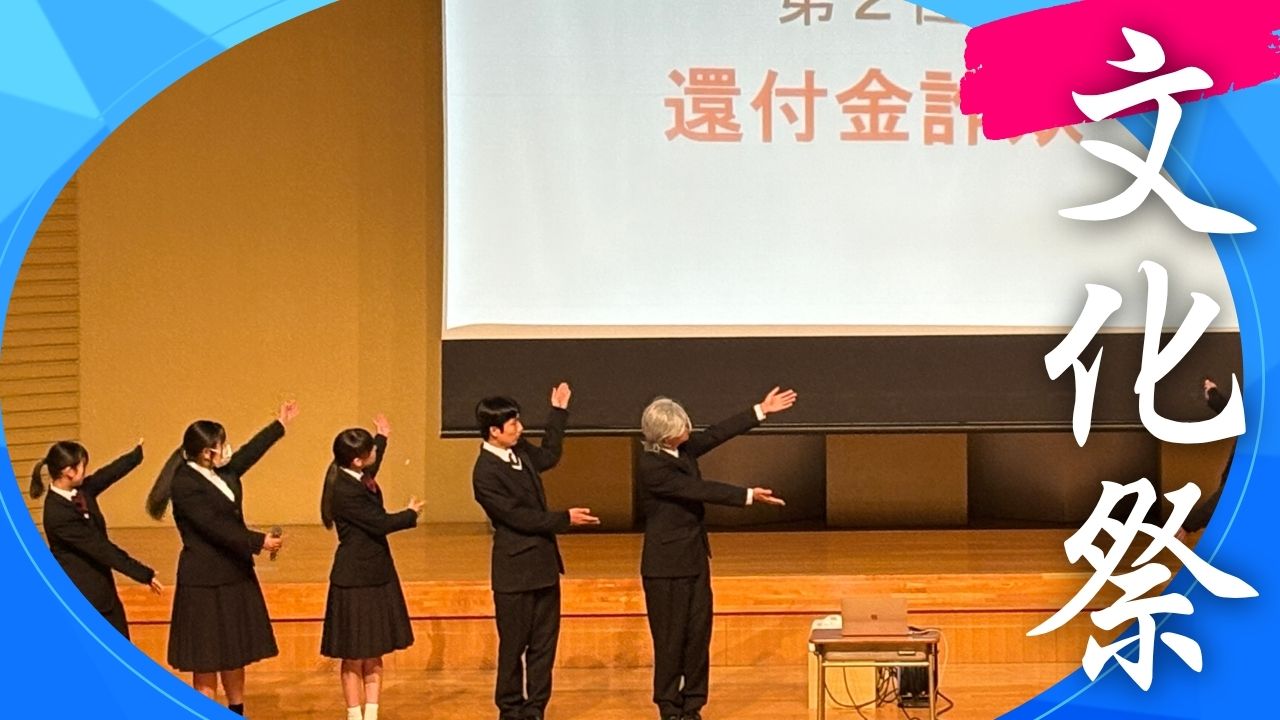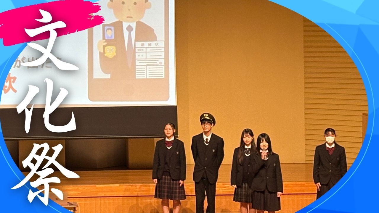 本校の文化祭はマイスタースクールごとで発表や展示を行います。特別進学コース1年生全員が選択している基礎探究講座では、『特殊詐欺防止』をテーマに発表を行いました。詐欺被害に遭わないための注意点など、大切なことが記憶に残る発表にするにはどうすればいいか、意見を出し合いながら練習を重ねてきた生徒達。その成果を存分に発揮し、本番では今までで1番よい表情で発表することができていました。発表までは緊張している様子でしたが、有志発表や部活動のバザーに参加したり、他の講座の展示や発表を見に行ったりと1日楽しく過ごせたようです。
