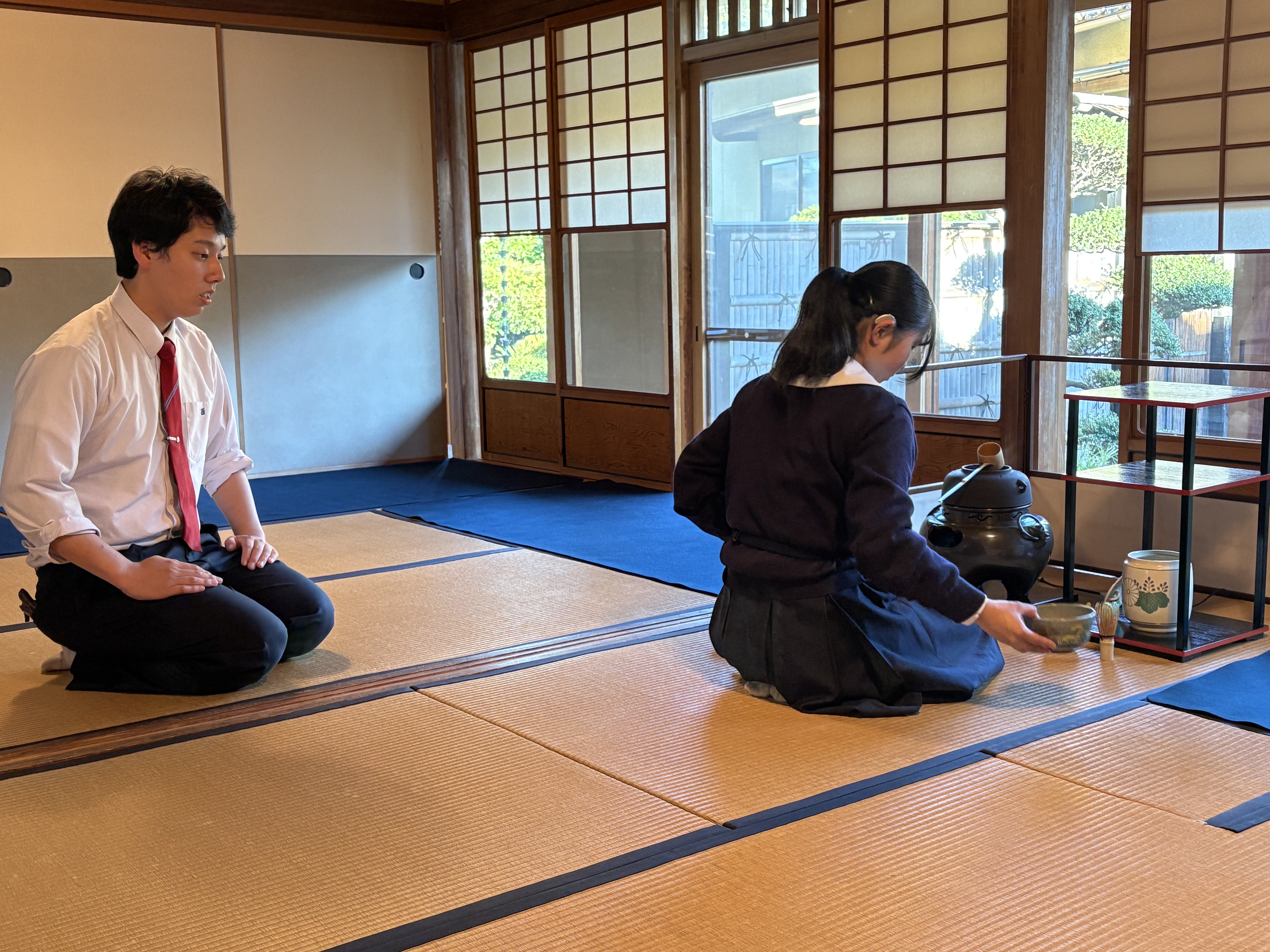 10月10日(金)に秋の茶会を行いました。2年生の部員が中心となって、本校の先生方をおもてなししました。 まだまだ夏のような暑さが残る10月ですが、少しでも秋の訪れを感じていただける機会になったのではないでしょうか。これから、さらに茶道の稽古を重ねたいと思います。