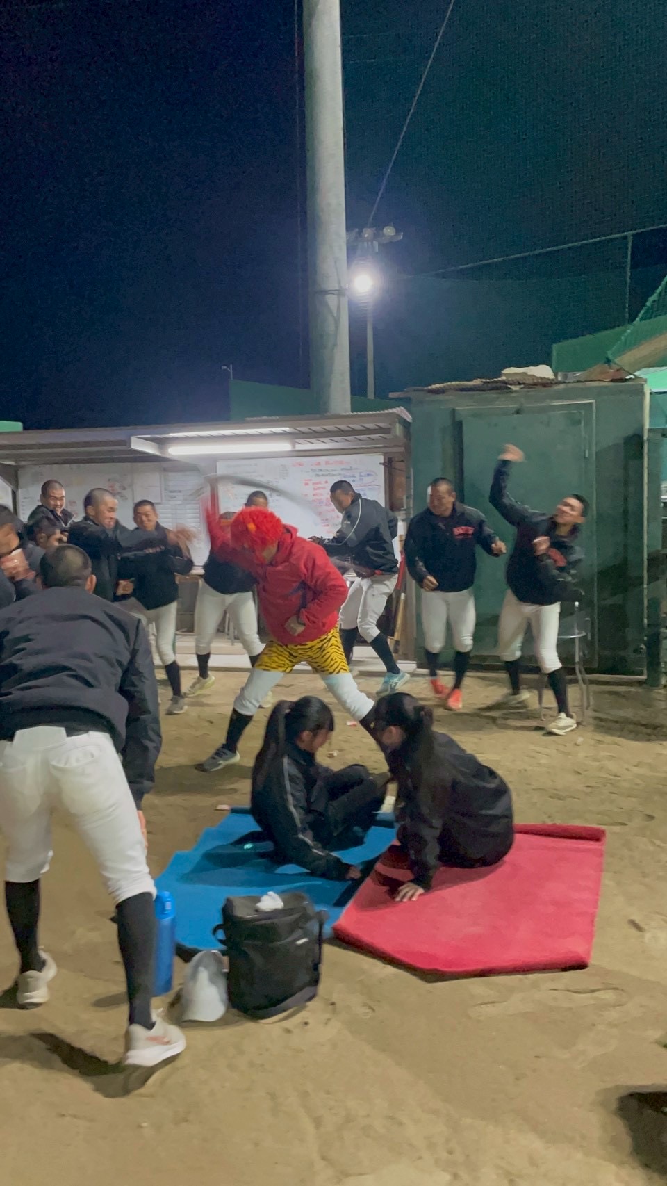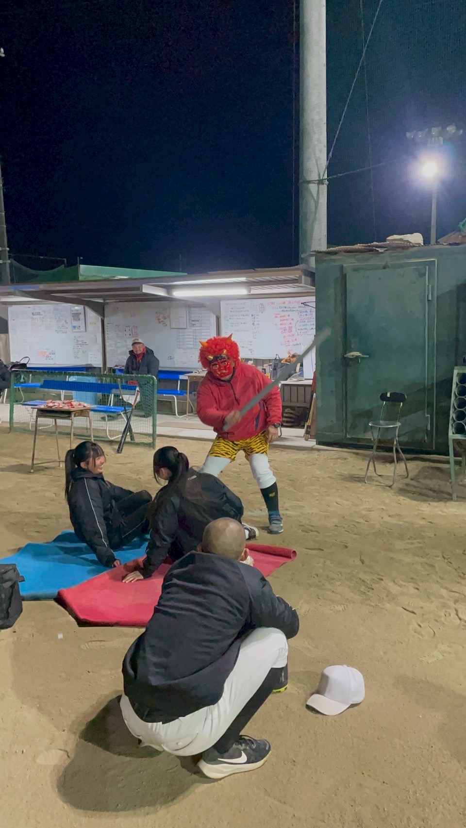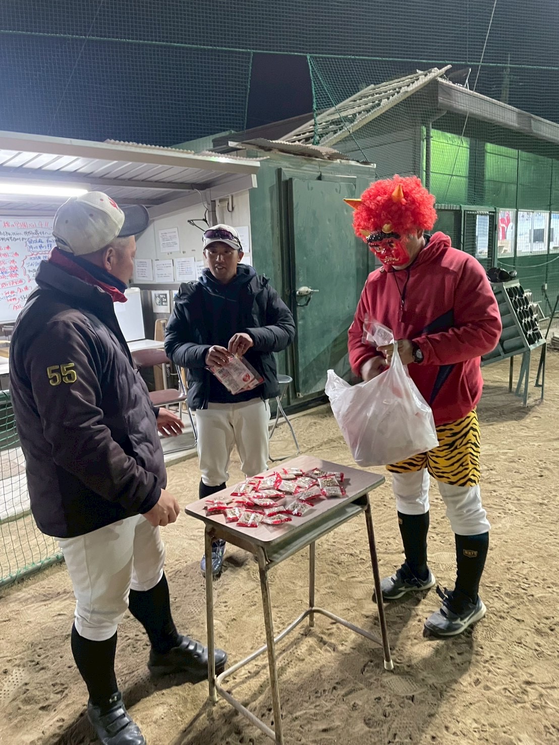 2月3日、節分です。翌日は立春。暦の上では春の始まり。たしかに、数日前に校内を歩いていると春の匂いがしてました。朝晩はまだまだ寒いですが、春の足音が聞こえてきてます。さて今年もやってきた赤鬼監督。もう20年も使いまわしの衣装。もうええかなと思いつつ、やっぱりやるかと出動。襲われる村の娘マネージャー。助けに来た村人に反撃する赤鬼。いつもの台本通りですが、最近は、大人しい子が多く、なかなか助けに来ません。大丈夫か日本。こんなんだから平気で領空侵犯に領海侵犯されるんです。ただ、今年の2年生は遠慮なし。バチバチ投げてきました。面の目からよーく見えました。明日からのメニューで苦しめてやる…。村人達は仲間を守るために立ち上がりました。赤鬼が退散した後は、福は内!福は内!福は〜うち〜!節分とは文字通り節(季節)の分かれ目。昔は立夏、立秋、立冬、それぞれの前日のことを節分と言っていましたが、現在では立春(2月4日頃)の前日を節分というそうです。節分に行う豆まきは、季節の変わり目に起こりがちな病気や災害を鬼に見立て、それを追い払う儀式だそうで、魔(ま)を滅(め)するから豆を投げるんだそうです。春遠からじですね〜