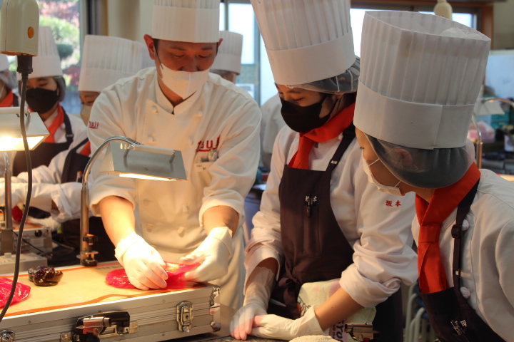 12月12日(金)、辻調理師専門学校の先生にお越しいただき、製菓科の1年生が飴細工の特別授業を行いました。