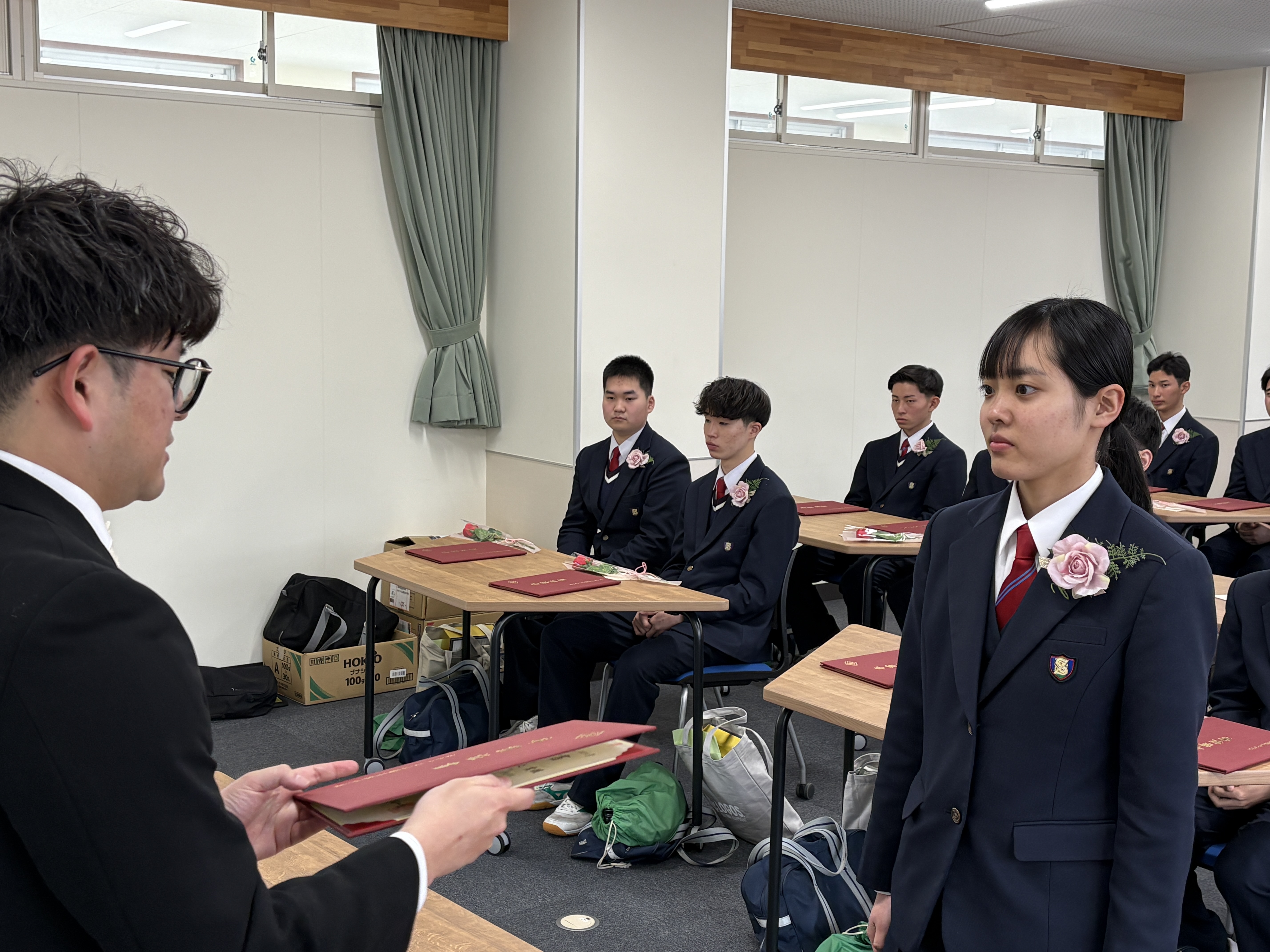 姉が通っていたことがきっかけで公務員コースを受験しました。入学後は、公務員試験合格という目標に向かい、授業や補習、検定取得に真剣に取り組みました。思うようにいかないこともありましたが、目標を達成できた時はとても嬉しかったです。2年生からは本格的に公務員試験の勉強が始まり、「模試の結果に一喜一憂するな」と先生からは何度も言われ、その言葉を胸に自分の課題と向き合い努力を続けました。無事に合格することができたのは、先生や家族、先輩など多くの方々の支えがあったからこそです。4月からは新たな場所でも、努力を続け真摯に仕事に向き合っていきたいと思います。(岡山県警察行政職員合格)