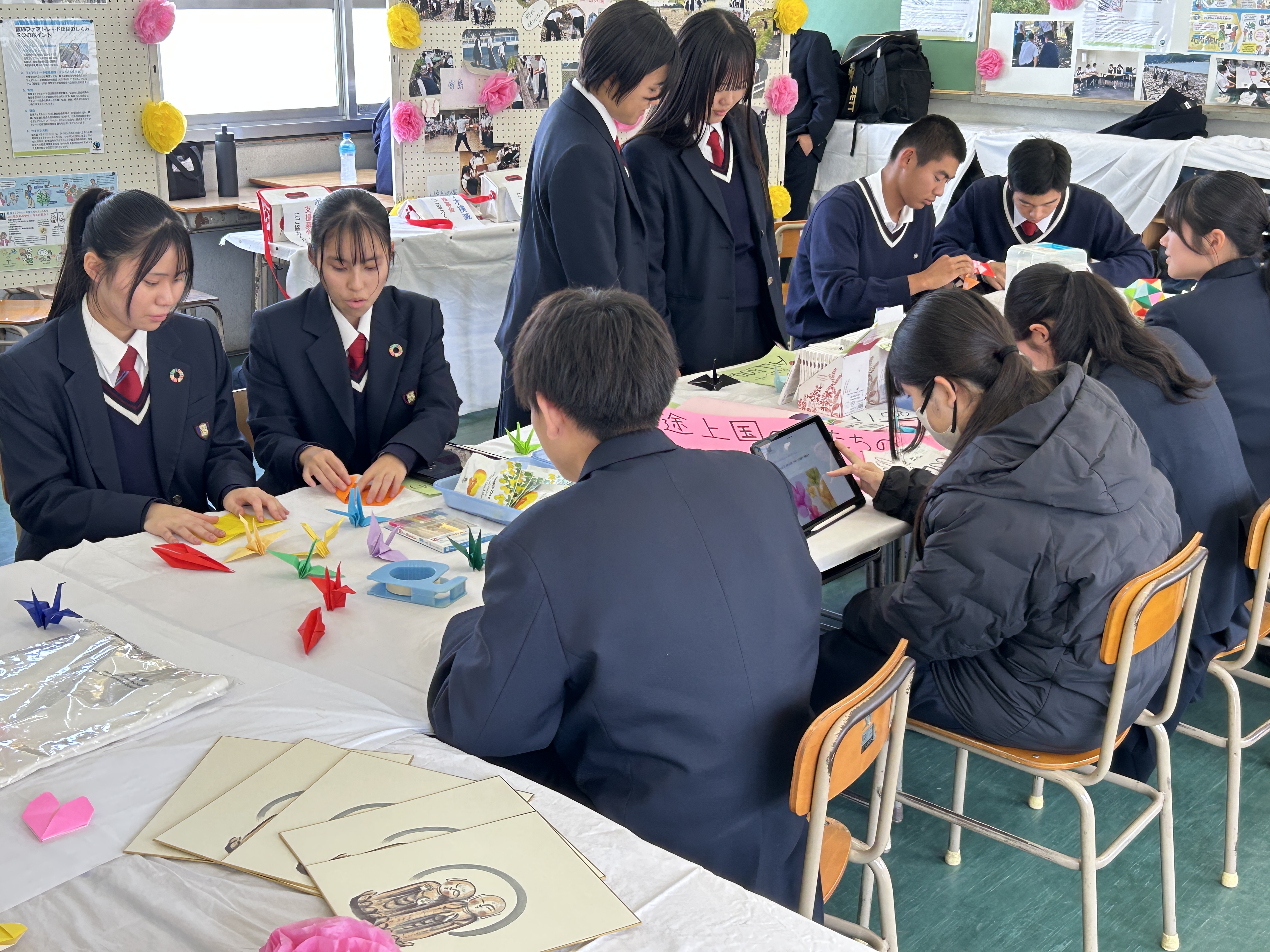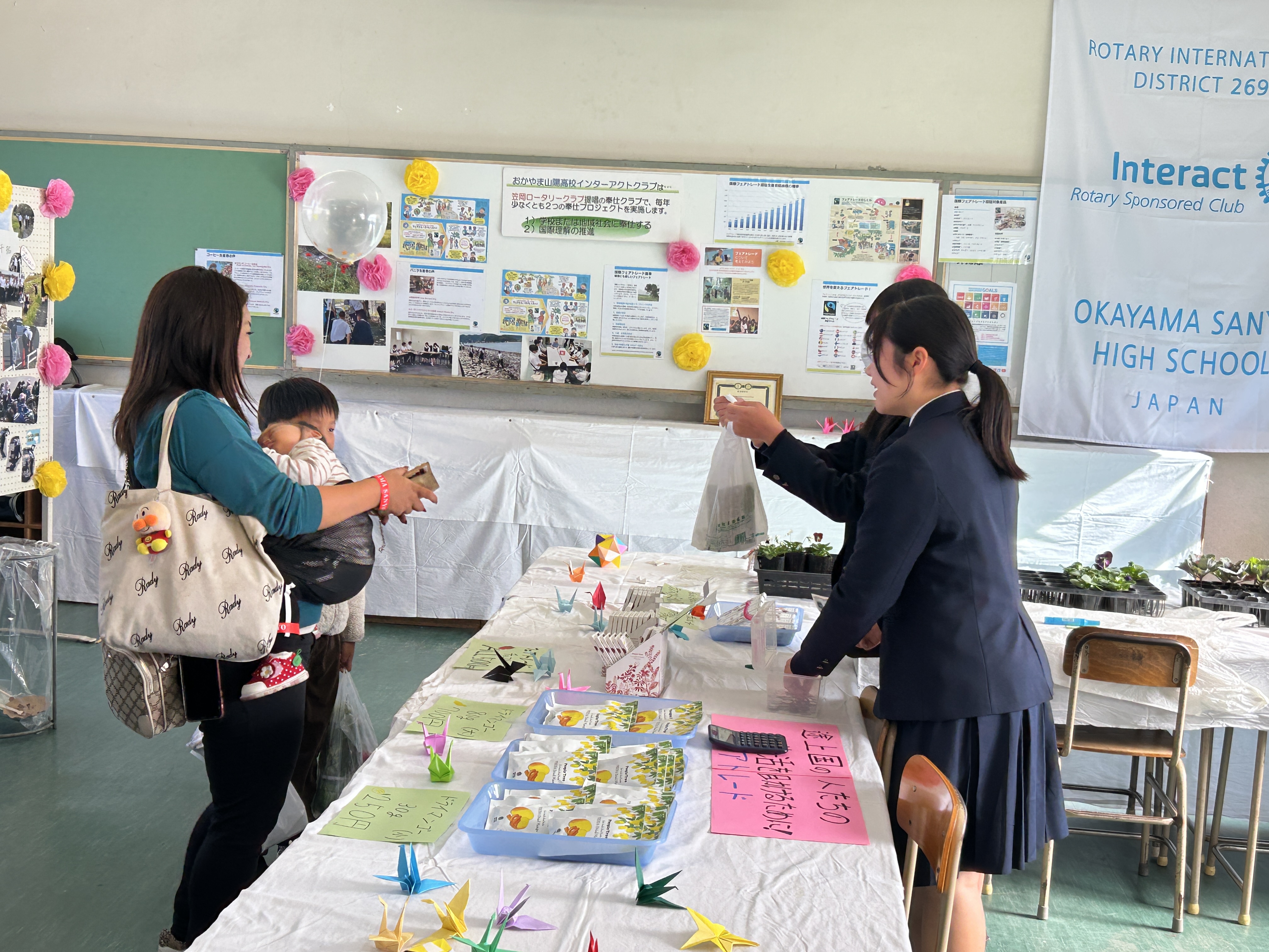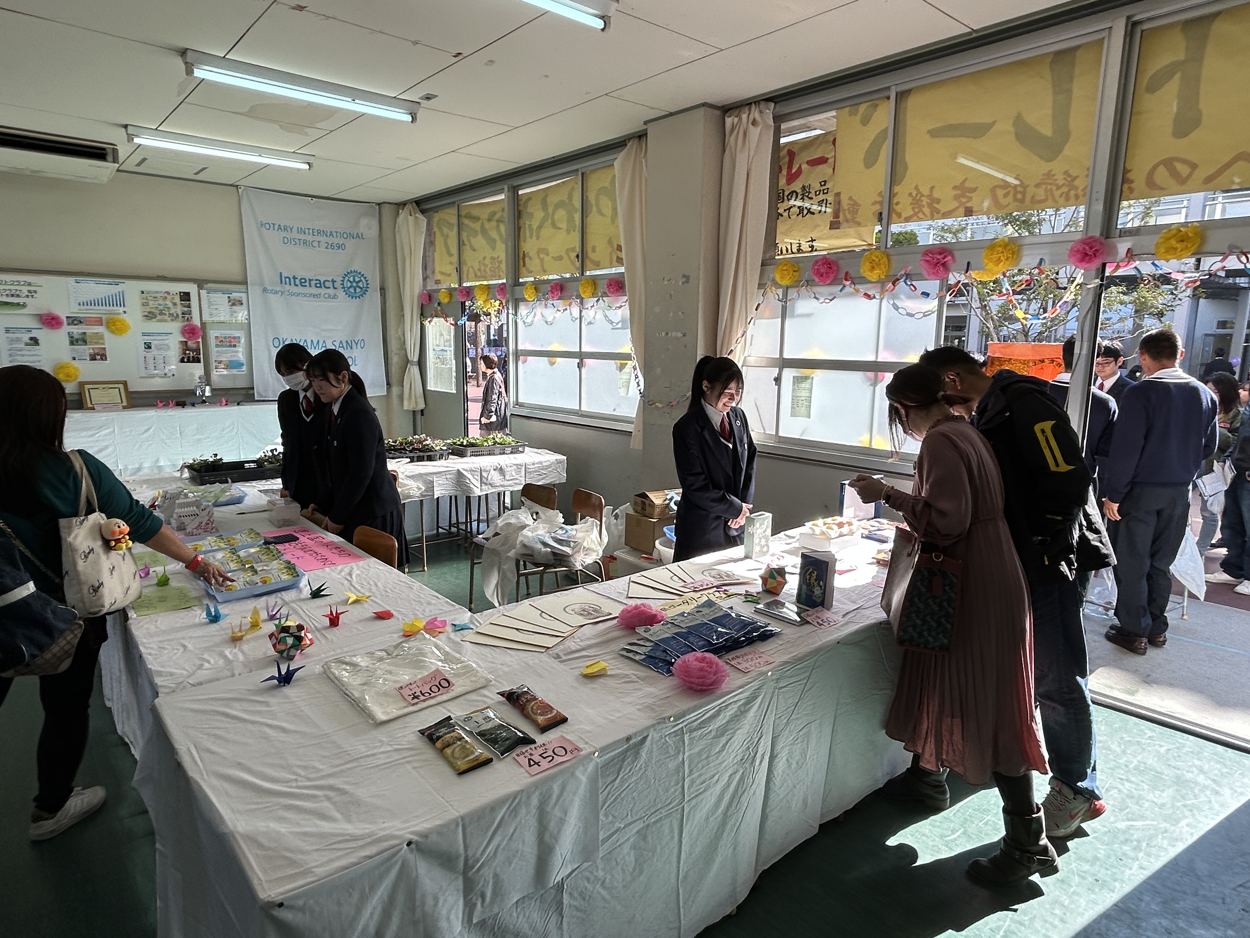 11月15日、おかやま山陽高校の文化祭にて、ボランティアバザーとフェアトレード商品の販売を行いました。フェアトレードとは、開発途上国で生産される農作物や製品を、適正な価格で継続的に購入することで、生産者の生活改善と自立を支援する仕組みです。本校でも、この取り組みに賛同し、文化祭を通してフェアトレード商品の販売を行いました。当日は、保護者の皆様をはじめ、生徒・教職員のご支援を賜り、バザー品ならびにフェアトレード商品を完売することができました。また、笠岡ロータリークラブの皆様には、バザー品をご提供いただき、心より感謝申し上げます。今回の活動を通して得られた収益は、開発途上国の生活向上のために役立てられます。ご協力いただいた皆様に深く御礼申し上げます。