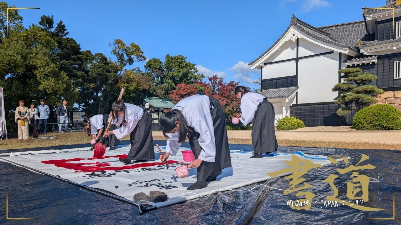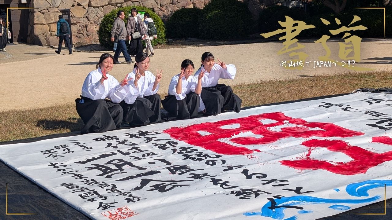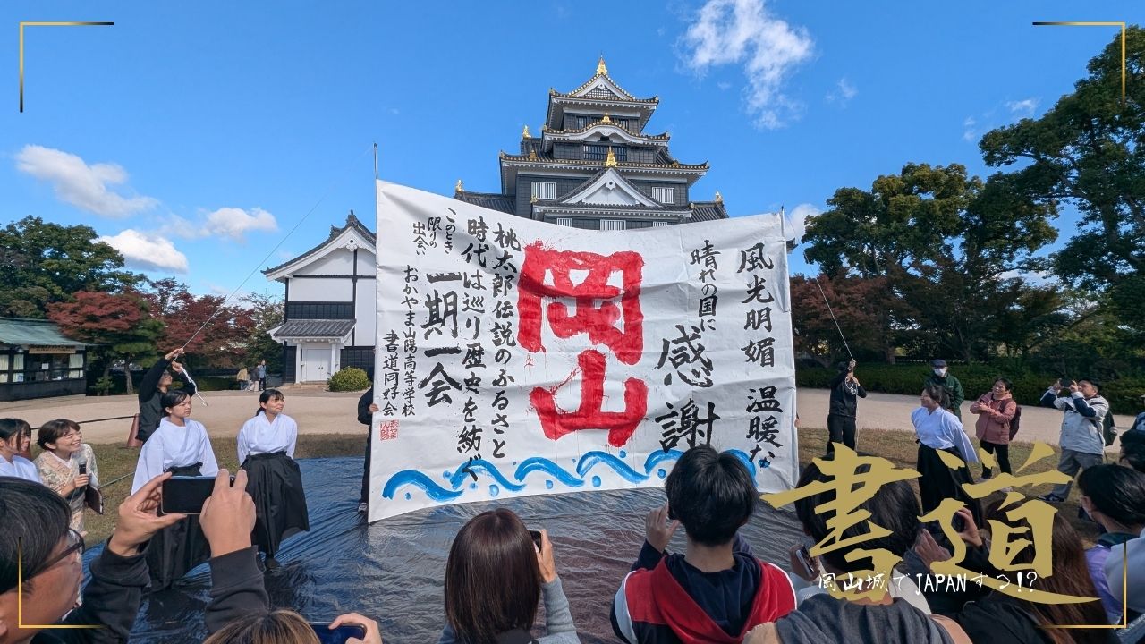 岡山城で開催された和文化体験イベント『岡山城でJAPANする!?』にて、特別進学コース1、2年生が所属する書道同好会が書道パフォーマンスを行いました。日々の練習で磨いてきた表現力を存分に発揮し、地域の方々にも生徒たちの熱意を感じていただける時間となりました。歴史ある城郭を背景に行う演舞は学校内とはまた違った緊張感があり、生徒たちにとっても特別な想い出になったのではないでしょうか。今後の活動も楽しみにしています!