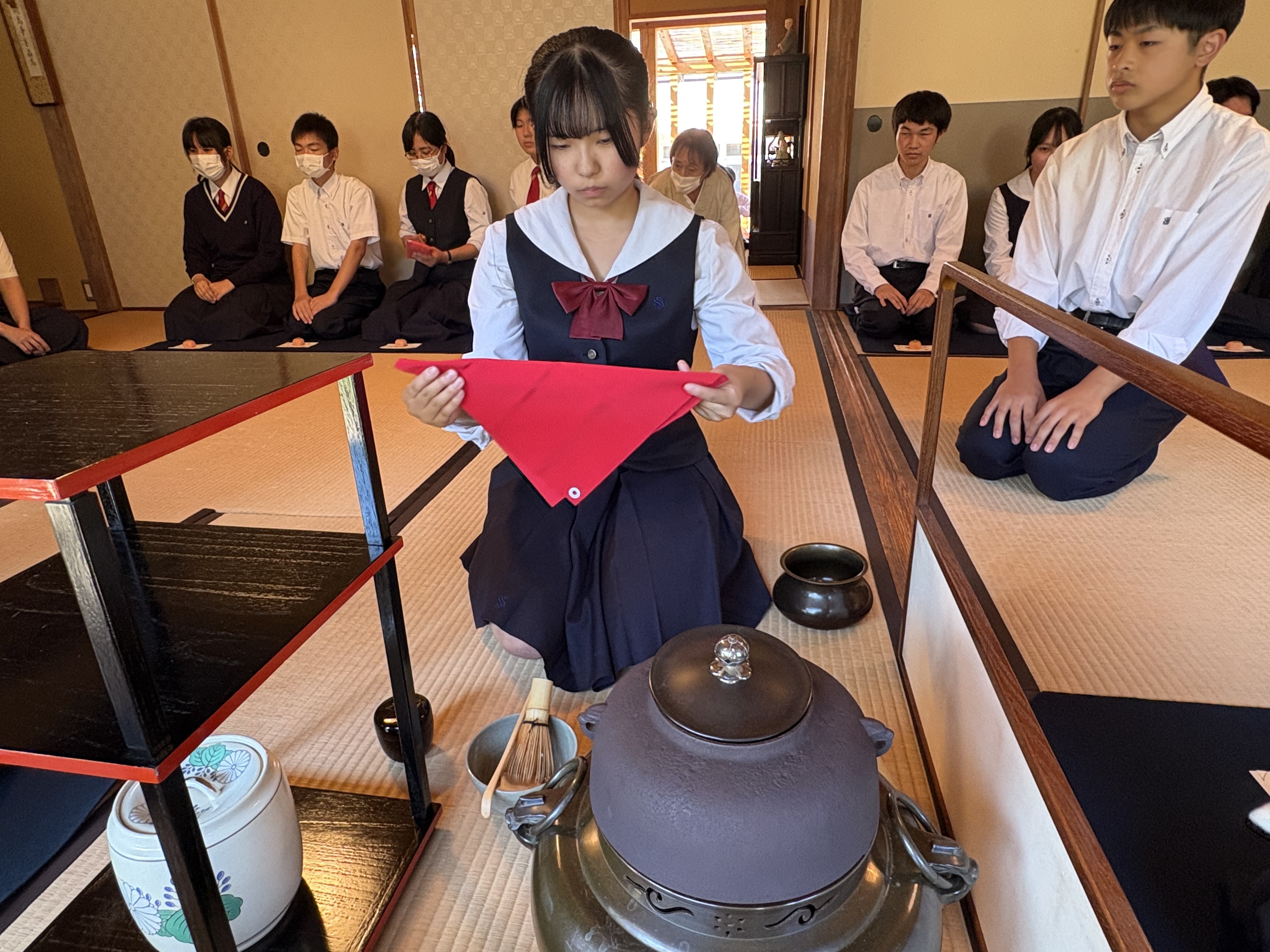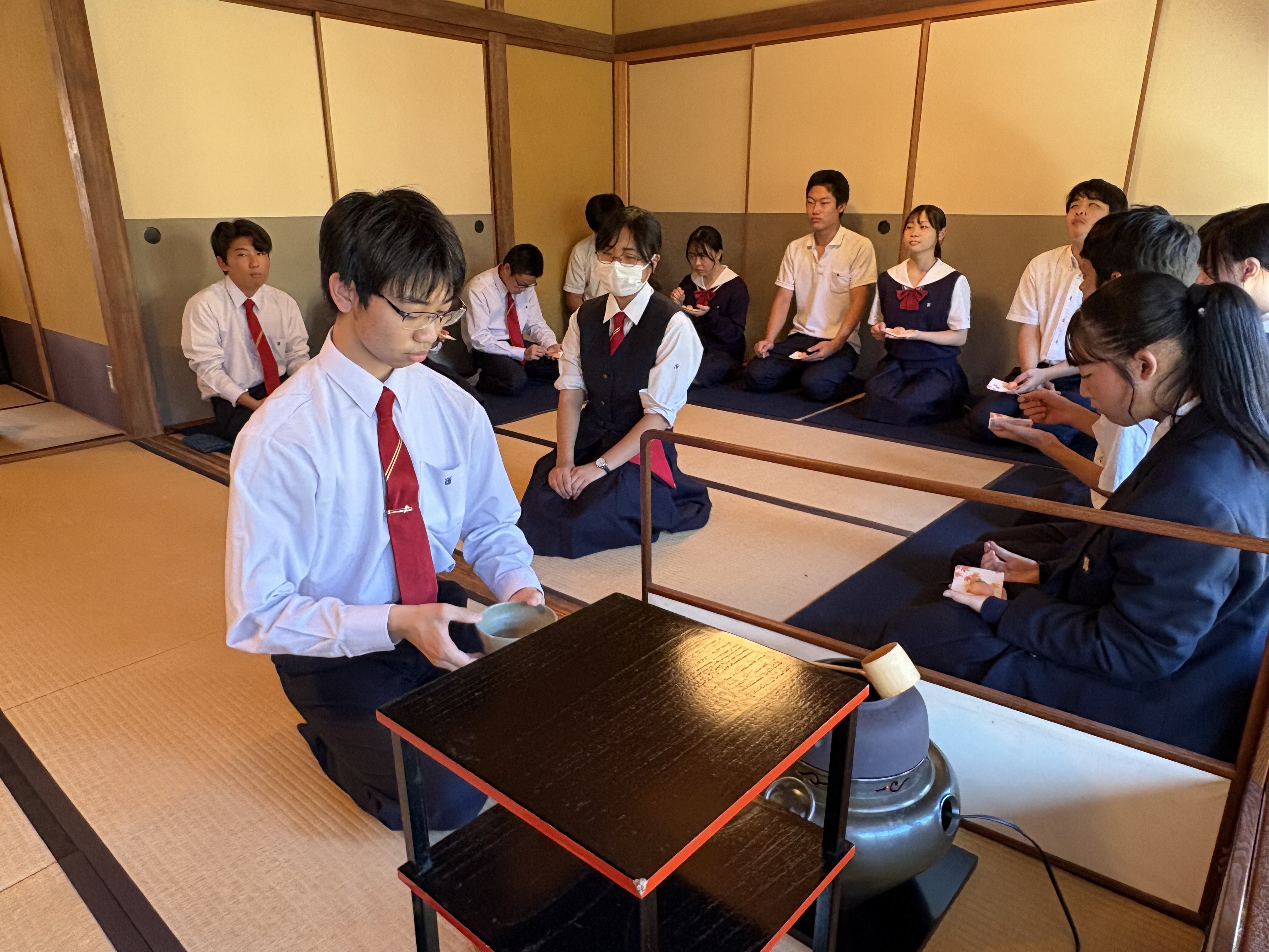 普段の授業とは違った茶室で、少し緊張しつつも楽しくお茶会を行うことができました。