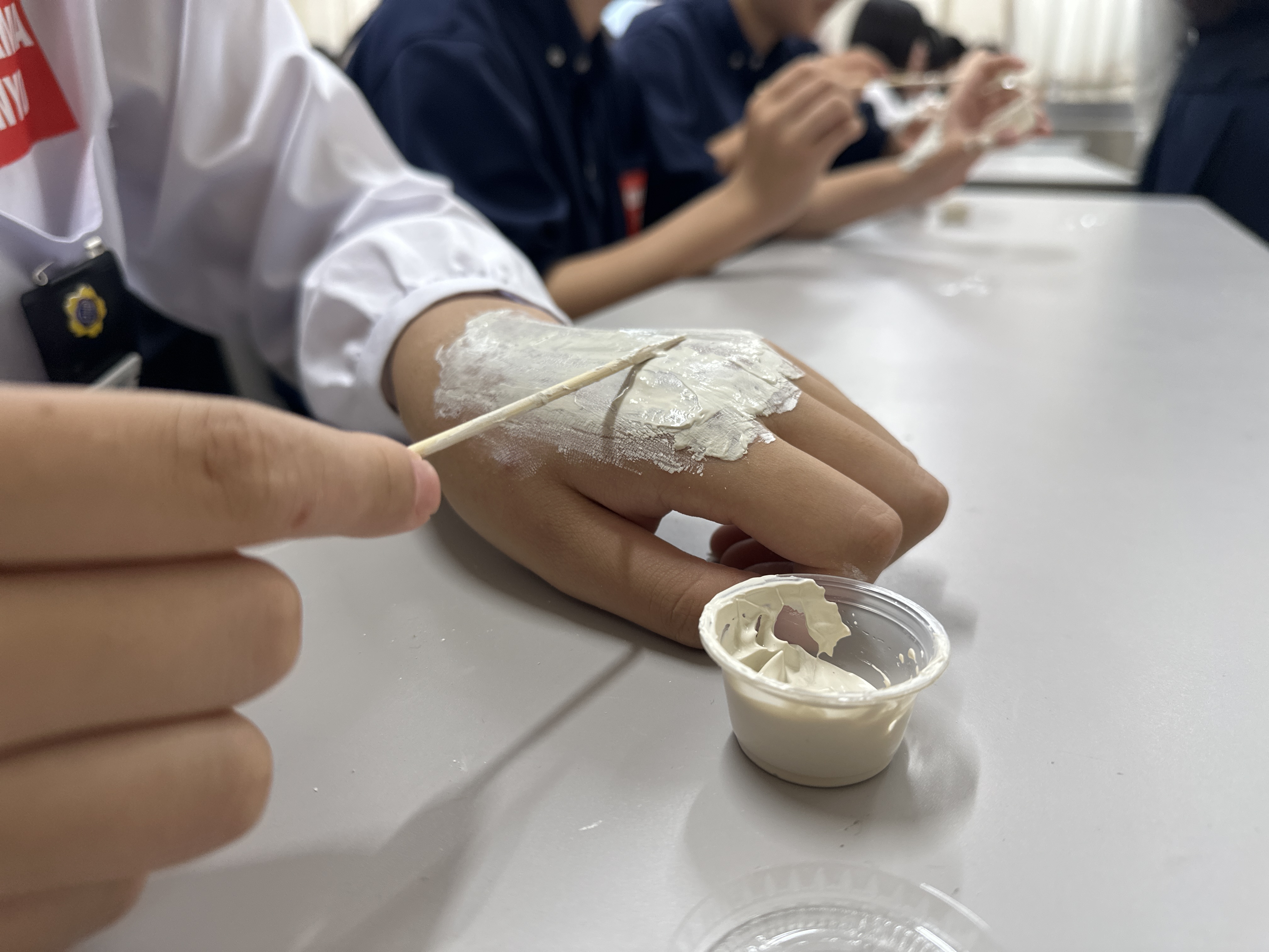 今回の体験授業はアロマが泥パック、ネイルがネイルチップ作りでした。