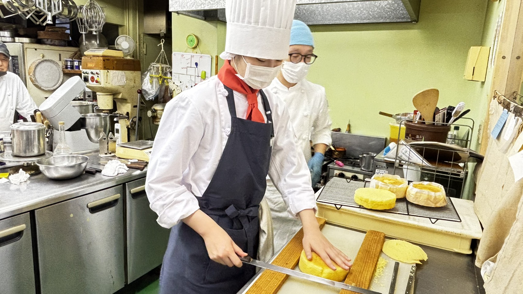 1年間、学校の授業で教わってきた洋菓子の基礎、技術はありますが、それとはまた違って店舗の数だけケーキの作り方が違うので、とまどうこともありましたが、一週間という短い時間の中でたくさんのことを学ばせてもらえたのではないでしょうか。
