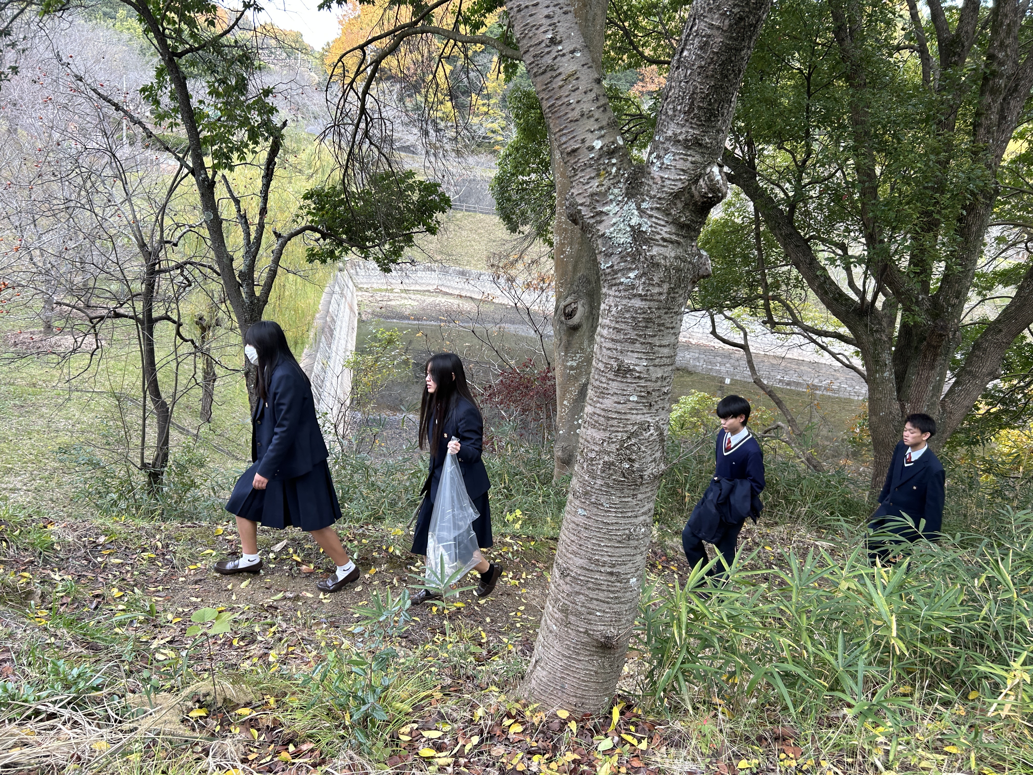 金光町にある丸山公園は大人から子どもまでみんなが楽しく過ごせる公園です。中央の大きな池は、地域の皆さんの憩いの場として親しまれています。この日は、綺麗に色づいた紅葉に囲まれながら清掃活動を行いました。多くの方に気持ちよく利用していただけるよう、みんなで力を合わせて公園をきれいにしました!