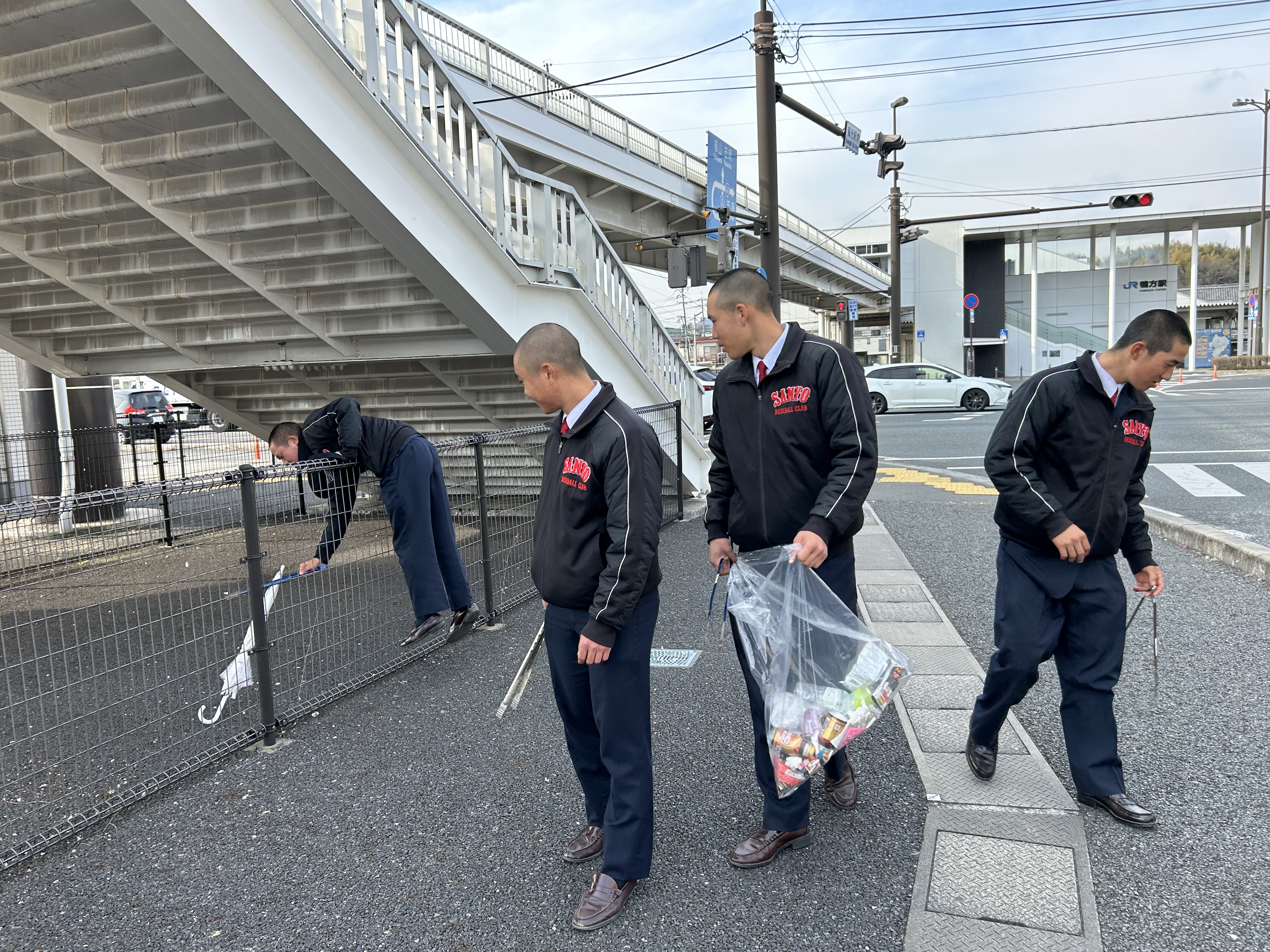 2月5日、JR鴨方駅周辺の清掃活動を行いました。鴨方駅は、おかやま山陽高校の生徒が最も多く利用する最寄り駅です。日頃から利用させていただいていることへの感謝の気持ちを感じながら、駅からの通学路に落ちているゴミを丁寧に回収しました。また、3年生が引退してから初めての活動となりましたが、残ったメンバー全員が精一杯取り組みました。